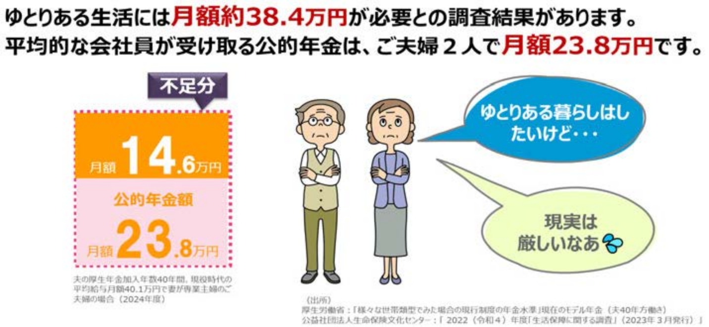 公的年⾦は、終⾝保証の保険です。⻑⽣きリスクに備える最⼤の保険と⾔えます。