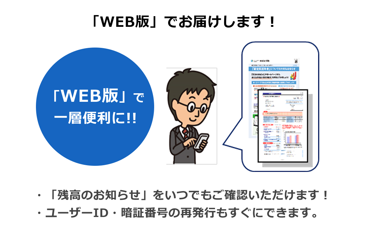 東京海上日動では、帳票(紙)で提供している「確定拠出年金・残高のお知らせ」のWEB版登録を推奨しています。