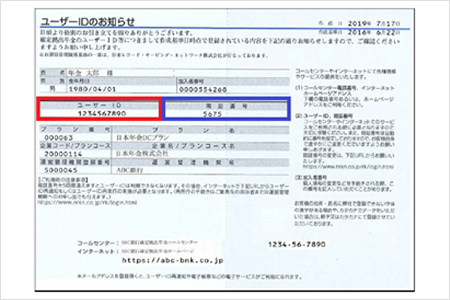 「ユーザーIDのお知らせ」ハガキが届きますのでユーザーIDと暗証番号を確認します。