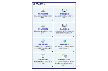 ユーザーID・暗証番号の再通知、運用商品の変更など各種手続きをご案内します