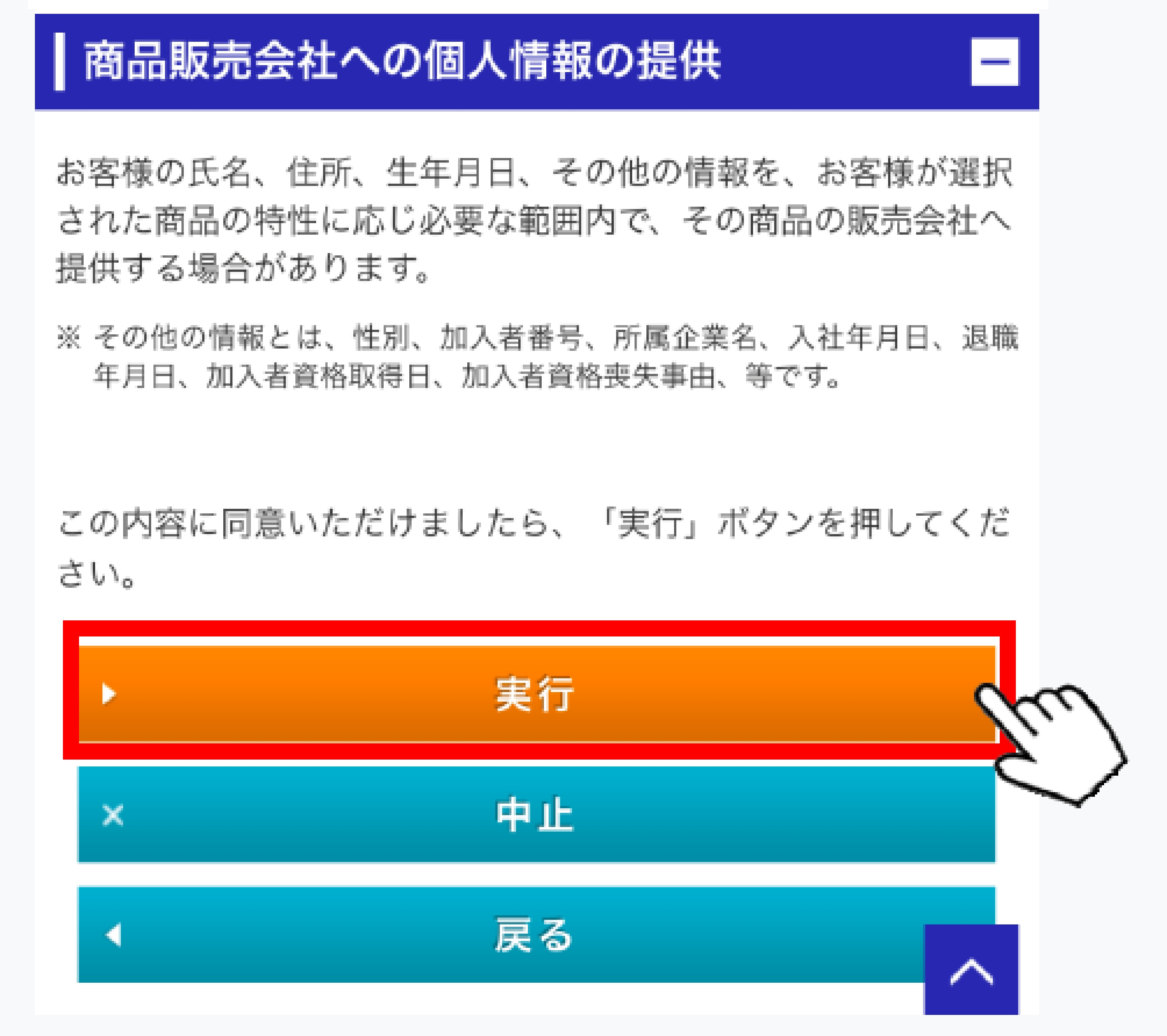 内容を確認し[実⾏]をタップ
