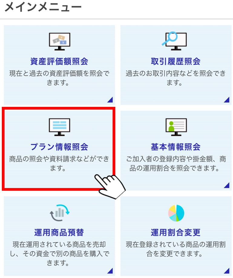 ユーザーID・暗証番号の再通知、運用商品の変更など各種手続きをご案内します